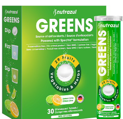 Comprimés effervescents Nutrazul GREENS , 29 fruits, légumes et herbes, citron vert, 30 comprimés