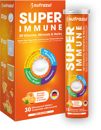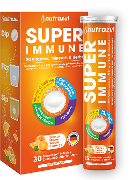 Comprimés effervescents Nutrazul Super Immune, 20 vitamines, minéraux et Herbes, saveur orange, 30 comprimés